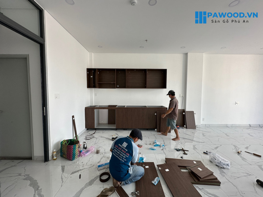 Hình ảnh công trình thi công bếp nhựa căn hộ: