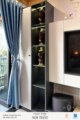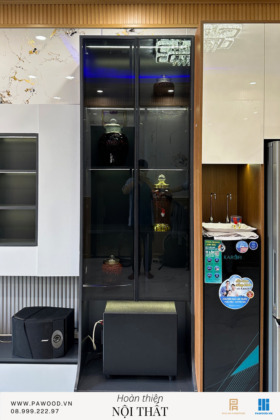 Với các phụ kiện đi kèm như đèn LED, cánh kính mờ tạo cho không gian sinh hoạt có thêm chiều sâu, gây ấn tượng mạnh với các vị quan khách ghé thăm nhà.