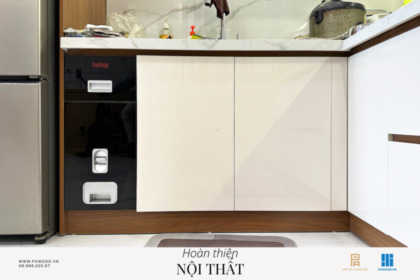 Phần thùng bếp dưới thường xuyên bị ảnh hưởng bởi hơi ẩm và nước. Để tăng độ bền tuyệt đối cho căn bếp sau khi cải tạo chung cư, Phú AN sử dụng nhựa đặc nhập khẩu chuyên dụng sử dụng cho không gian. Với nhựa đặc, loại vật liệu không hề bị thấm, chống nước hoàn toàn nên quý khách hàng có thể yên tâm sử dụng bếp mà không lo kết cấu bị ảnh hưởng sau thời gian dài sử dụng.