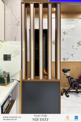 Tường ẩm mốc lâu năm đã xuống cấp gây khó chịu cho gia chủ. Về phần tường, Phú An xử lý bằng phương pháp ốp PVC vân đá kết hợp lam sóng lam ri làm điểm nhấn cho ngôi nhà. Sử dụng khung xương chịu lực bằng đinh thép vào tường, sau đó tấm ốp PVC được cố định vào khung xương bằng keo chuyên dụng tạo ra một khoảng hở cách ẩm cho không gian. nhờ vậy tấm ốp PVC không bị ảnh hưởng bởi hơi ẩm.