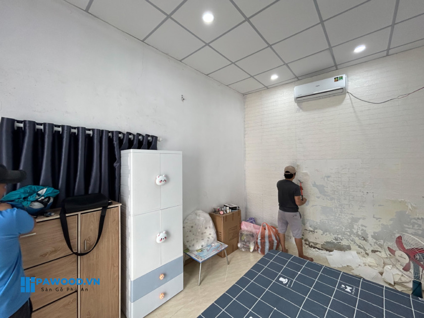 👉🏻 Cải tạo nhà cũ bằng vật liệu nhựa – Giải pháp tối ưu về chi phí nhưng hiệu quả rõ rệt. Vật liệu nhựa nhìn chung có độ bền cao nhưng giá thành lại rẻ và hợp lí với hầu hết túi tiền của gia đình Việt. Cải tạo nhà cũ Phú An lựa chọn tấm ốp PVC vân đá AIM và tấm ốp tường trần Hobiwood. Để tổng thể thêm hài hoà Phú An tư vấn cho khách hàng sàn nhựa dán Shine Floor 5mm với nhiều màu sắc cho anh chị dễ dàng lựa chọn.