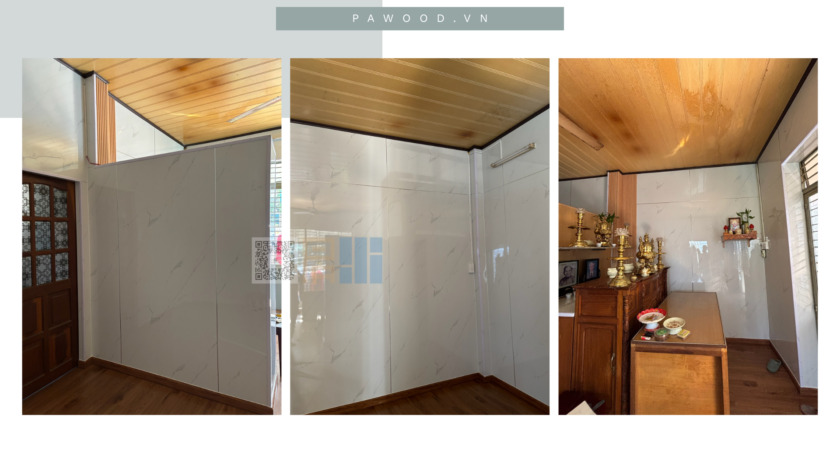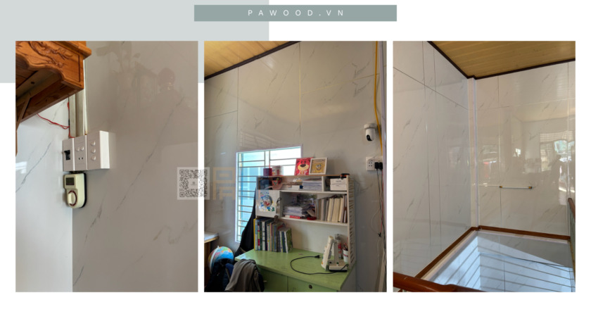 Thẩm mỹ đỉnh cao: Với các vân đá marble sắc nét hoặc vân gỗ ấm cúng, tấm PVC mang lại vẻ ngoài cực kỳ “chanh sả”. Khi bước vào căn phòng được ốp PVC chuẩn chỉ, khách đến chơi nhà sẽ khó lòng tin được đây là một công trình cải tạo chi phí thấp.