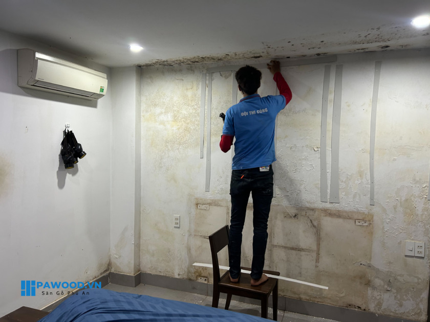 Thông tin công trình cải tạo phòng khách cũ bằng tấm ốp nhựa thi công bởi Công ty Phú An: