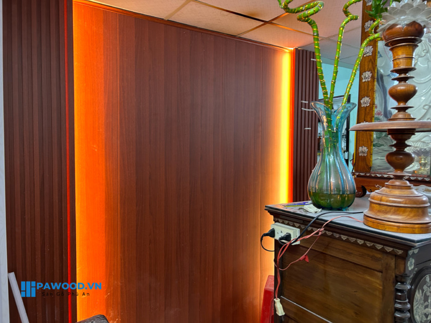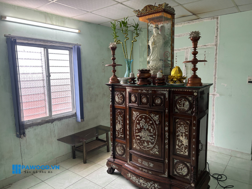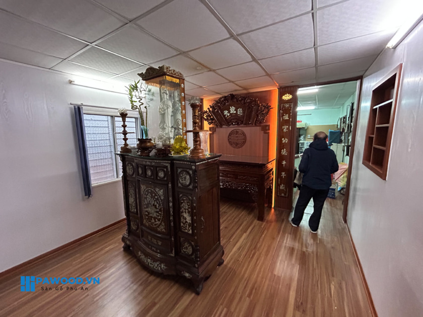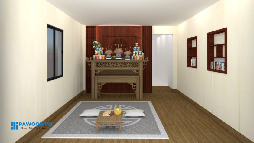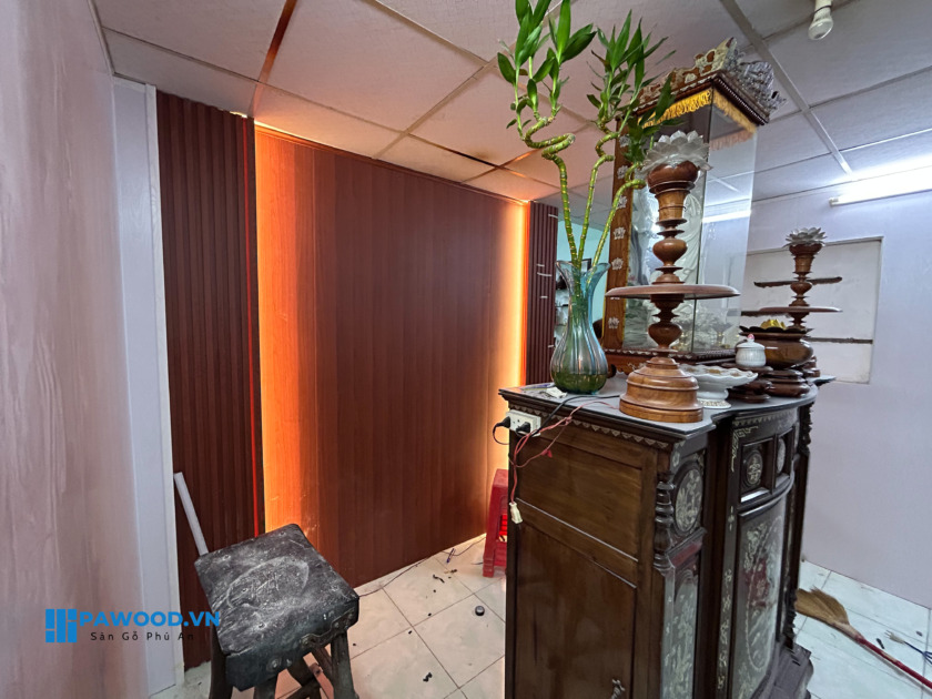 👉🏻 Cải tạo phòng thờ xuống cấp sau một thời gian dài, những vết ố, vết bẩn gây ra trong quá trình sử dụng khiến không gian phòng thờ trang nghiêm dần trở nên mất thẩm mĩ và mất vệ sinh trong căn phòng. Để xử lý vấn đề này, Phú An cải tạo phòng thờ bằng tấm ốp Nano, lam sóng Hobiwood và sàn nhựa dán TH Floor. Với vật liệu được sử dụng hầu hết là nhựa với nhiều ưu điểm như chống thấm tuyệt đối, chống bám bẩn, dễ dàng vệ sinh sẽ giúp cho phòng thờ của gia đình luôn trong tình trạng sạch sẽ, ấm cúm.