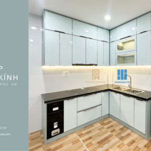 Bếp cánh kính siêu bóng với màu xanh pastel trẻ trung dẫn đầu xu hướng 2025 của nhà Phú An. Với nhiều gia đình trẻ,