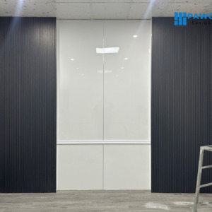 Thi công vách phòng khách dài 8m sử dụng tấm ốp nhựa và nội thất gỗ MDF Chi tiết »