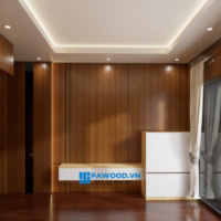 Bản vẽ 3D nội thất phòng ngủ sử dụng tấm ốp tường giả gỗ và PVC vân đá. Chi tiết »