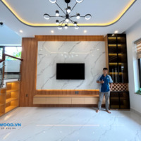 Thi công vách phòng khách dài 8m sử dụng tấm ốp nhựa và nội thất gỗ MDF Chi tiết »