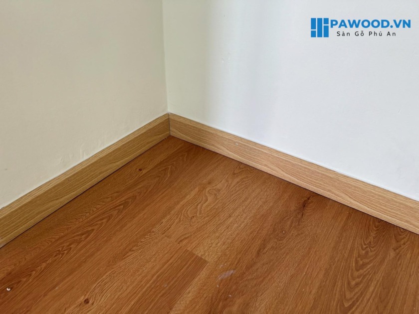 Đối với mặt bằng là phòng kín, chưa có chân tường thì Phú An khuyến nghị anh chị sử dụng Phào chân tường đối với những mí sàn nối với tường, sử dụng Nẹp kết thúc đối với các vị trí cửa ra vào.