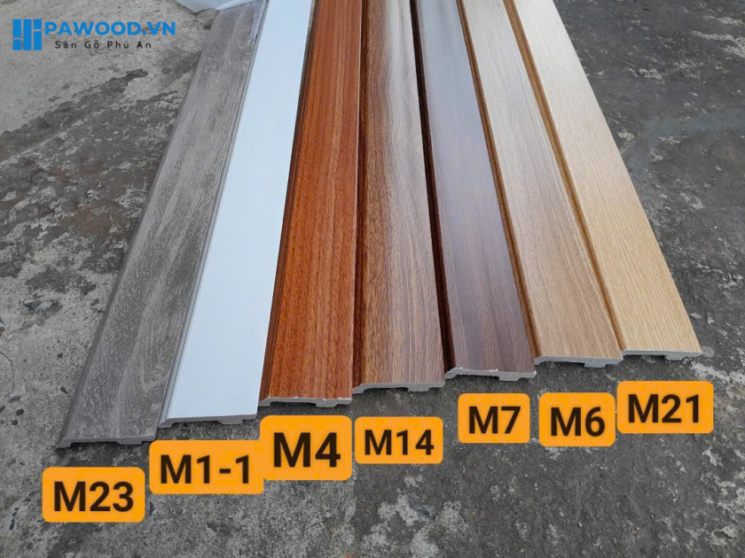Đối với mặ bằng là phòng đã có chân tường gạch men hay hành lang giếng trời, cầu thang,… Phú An khuyến nghị anh chị sử dụng các loại phụ kiện sàn gỗ như nẹp F, nẹp L, nẹp V để phù hợp nhất với mặt bằng, đảm bảo tính kỹ thuật và tăng độ bền cho bề mặt. - Dựa vào màu sắc: