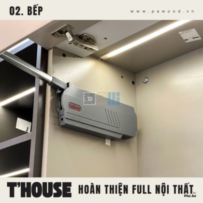 Bếp là nơi giữ lửa gia đình nhưng cũng là khu vực ẩm ướt và dễ bám bẩn nhất. Thấu hiểu điều này, chúng tôi mang đến một giải pháp thi công đột phá. Thay vì dùng hoàn toàn nội thất MDF nhập khẩu, chúng tôi ứng dụng một vật liệu đặc biệt cho khu vực nhạy cảm nhất. Đó chính là hệ thùng và cánh tủ bếp dưới được làm 100% từ nhựa đặc cao cấp.