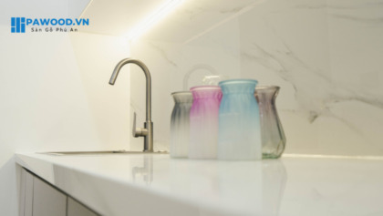 Để cải thiện ánh sáng cho tủ bếp, Phú An trang bị cho bếp 1 dãy đèn led hỗ trợ ánh sáng khi sử dụng, nhờ vào đó mà tạo điểm nhấn cho không gian thêm phần sáng sủa, hiện đại.