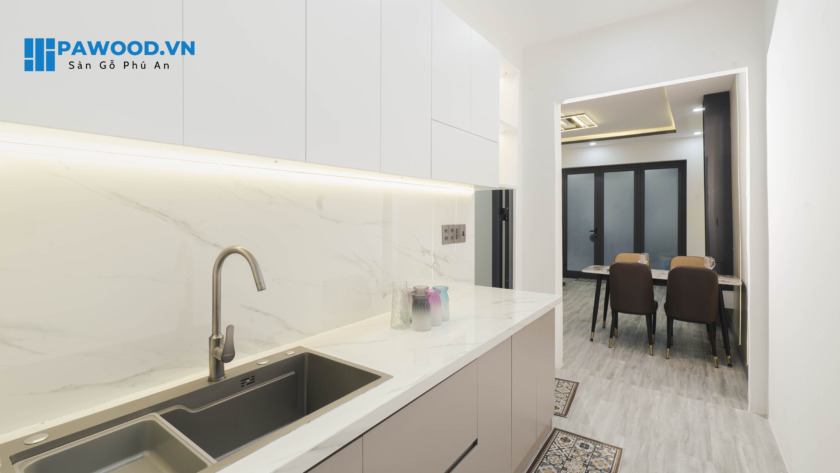 👉🏻 Nhà phố hiện đại không gian nhỏ cần thi công tủ bếp đẹp, hiện đại, đáp ứng đầy đủ các nhu cầu cơ bản của gia đình. Phú An hoàn thiện tủ bếp từ vật liệu Melamine siêu bóng, chống chịu nước, chống trầy vô cùng hiệu quả giúp quý khách cực kì yên tâm trong quá trình sử dụng. Với 2 hệ thống tủ trên và dưới sẽ đáp ứng được đầy đủ không gian chứa đồ dùng cho gia đình mà không lo bị chật chội, không đủ chỗ khi quý khách sử dụng.