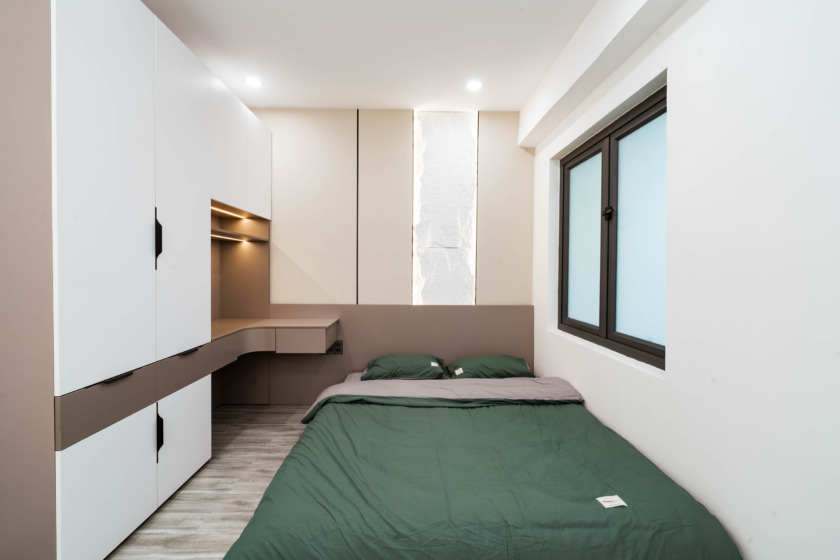 👉🏻 Với xu hướng thiết kế trẻ trung, năng động, Phú An đã thi công và hoàn thiện nội thất phòng ngủ hiện đại sử dụng ván gỗ công nghiệp cao cấp cùng một số vật liệu ốp tường nổi bật.