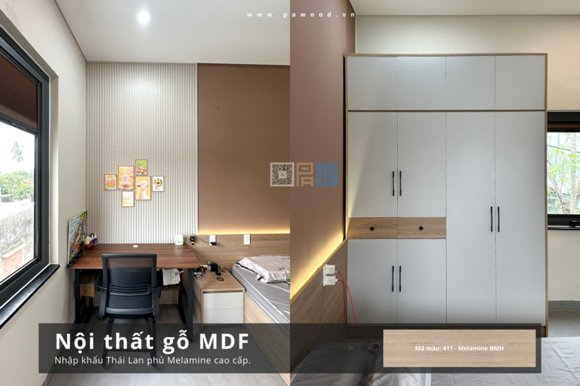 Nội thất màu 411: Sự kết hợp hoàn hảo giữa độ bền MDF Thái Lan và thẩm mỹ hiện đại.