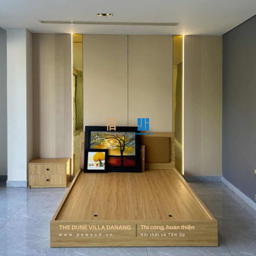 Phần nội thất villa được Phú An sử dụng loại gỗ MDF chất lượng cao nhập khẩu trực tiếp từ Thái Lan cho ra chất lượng hoàn thiện sắc nét, xử lý góc cạnh chuẩn chỉ đến từng mm. Với công nghệ dán cạnh tiên tiến nhất thị trường cũng như sử dụng các loại keo dán chất lượng cao. Từng sản phẩm Phú An cho ra lò đề mang một độ chi tiết cực kì lớn, cải thiện đáng kể góc nhìn.