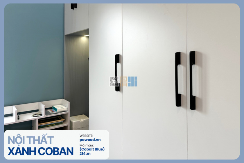 Điểm nhấn mảng miếng: Sử dụng xanh coban cho hệ tủ áo hoặc vách tường để tạo sự tập trung.