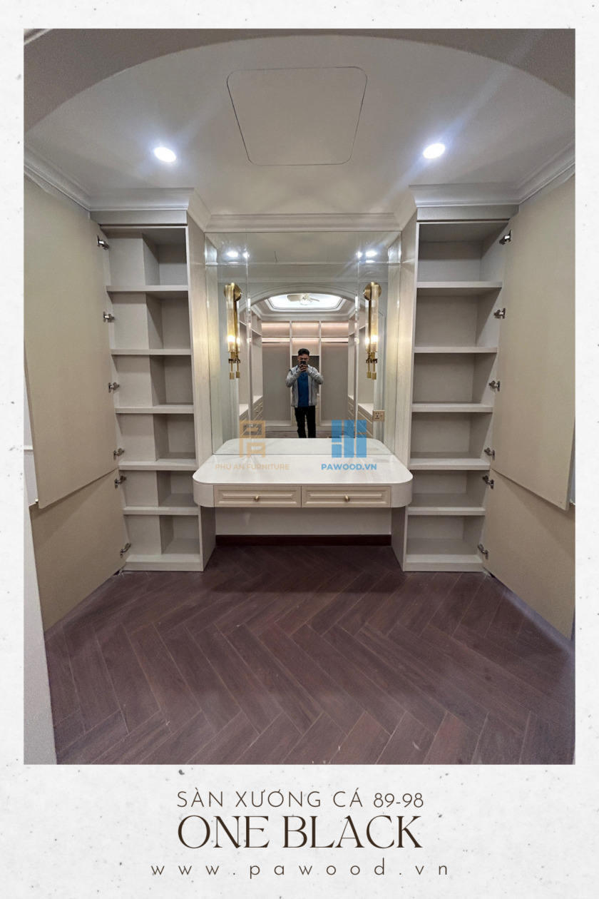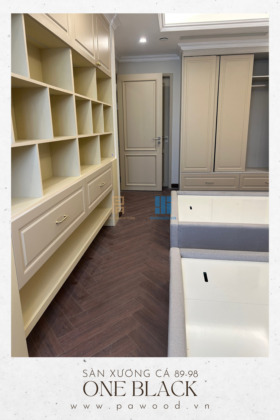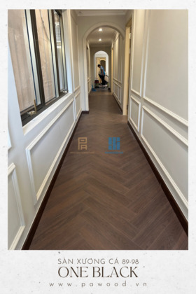 Với các công trình biệt thự, villa, các công trình có thiết kế sang trọng thì không thể nào thiếu sự góp mặt của sàn gỗ One Black xương cá 12mm