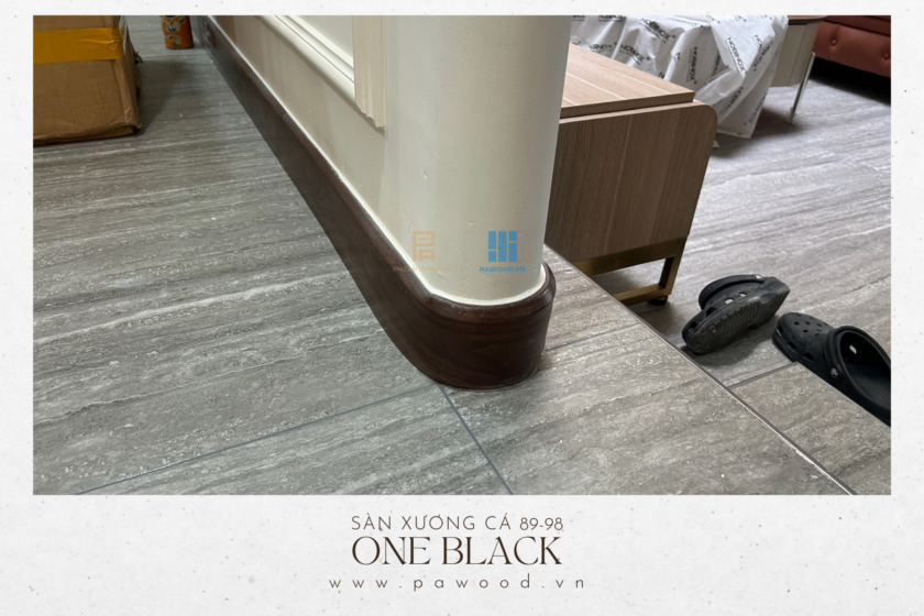 Phú An thi công hoàn thiện sàn One Black xương cá
