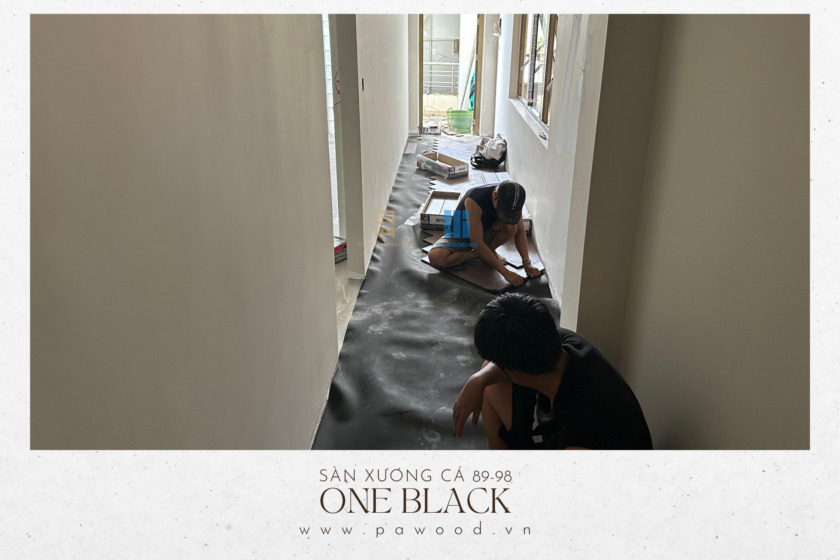 Phú An thi công hoàn thiện sàn One Black xương cá