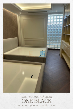 Với các công trình biệt thự, villa, các công trình có thiết kế sang trọng thì không thể nào thiếu sự góp mặt của sàn gỗ One Black xương cá 12mm