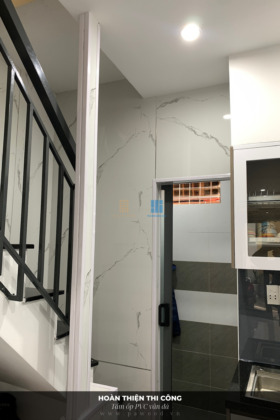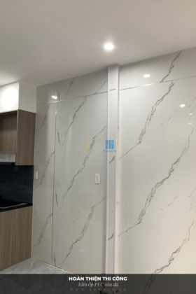 Với ốp tường PVC, loại vật liệu này được làm hoàn toàn từ nhựa và bột đá nên có khả năng chống nước, chống ẩm tuyệt đối. Lớp bề mặt căng bóng tạo hiệu ứng đá chân thật, giúp cho không gian thêm phần sáng sủa và sạch đẹp. Với giá thành rất dễ tiếp cận, ốp tường PVC sẽ là giải pháp tối ưu cho các gia đình có kinh phí đầu tư hạn hẹp.
