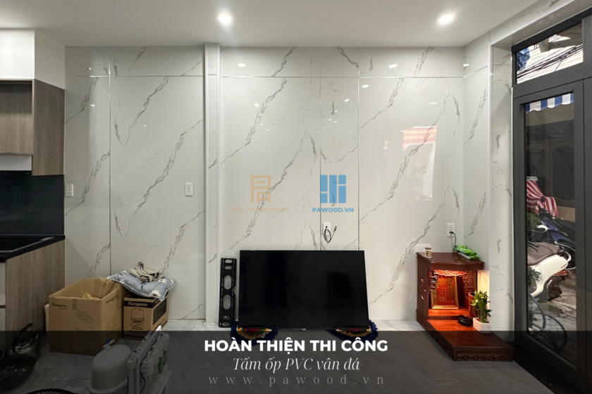 3. Ứng dụng sản phẩm: Thi công tấm ốp nhựa lamri và vách TV