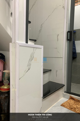 Với ốp tường PVC, loại vật liệu này được làm hoàn toàn từ nhựa và bột đá nên có khả năng chống nước, chống ẩm tuyệt đối. Lớp bề mặt căng bóng tạo hiệu ứng đá chân thật, giúp cho không gian thêm phần sáng sủa và sạch đẹp. Với giá thành rất dễ tiếp cận, ốp tường PVC sẽ là giải pháp tối ưu cho các gia đình có kinh phí đầu tư hạn hẹp.