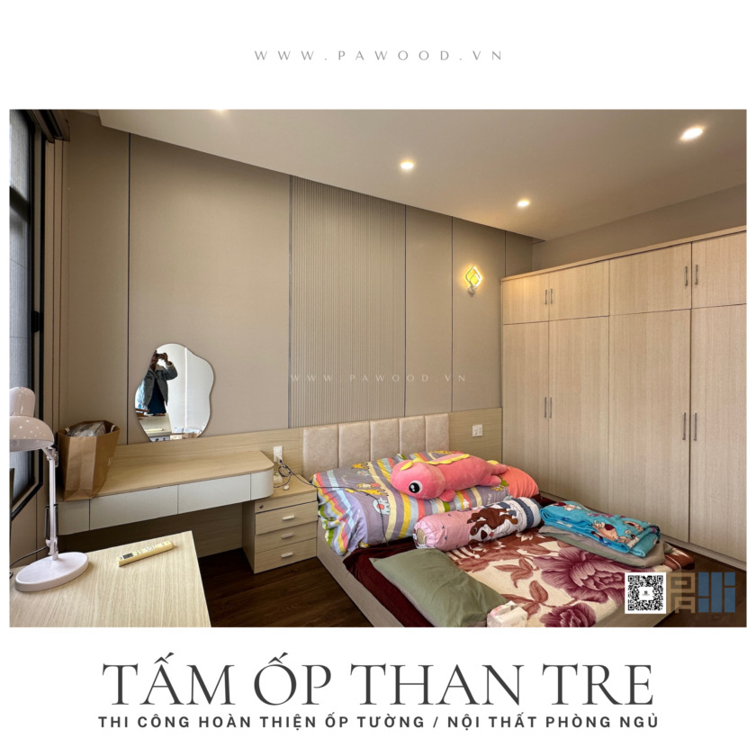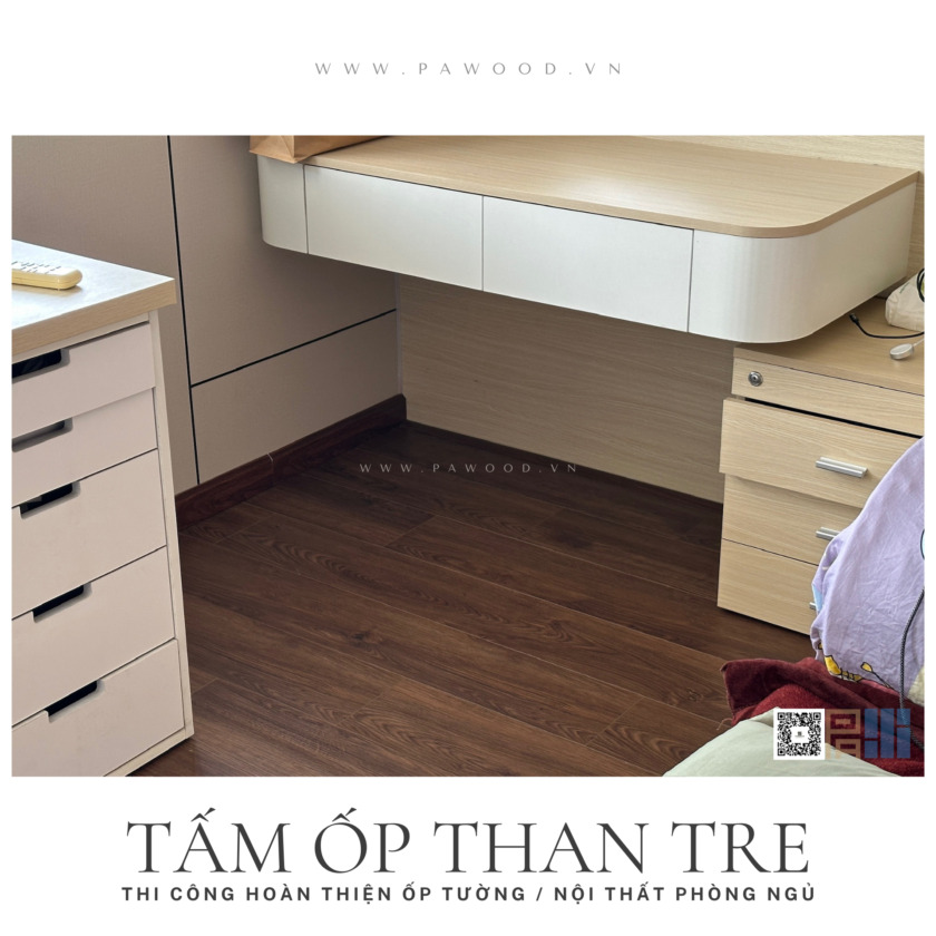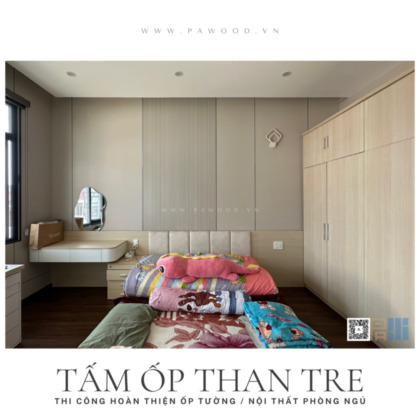 Việc thi công ốp than tre sử dụng keo chuyên dụng và hệ nẹp, không gây bụi bẩn hay tiếng ồn lớn. Gia chủ có thể vào ở ngay sau khi hoàn thiện mà không lo mùi hóa chất độc hại.