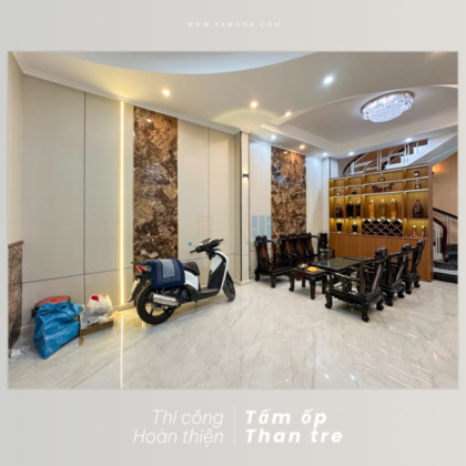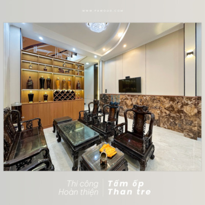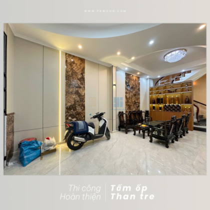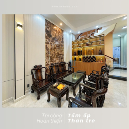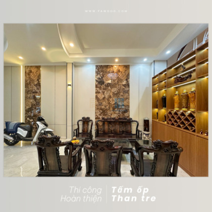 Phú An thi công hoàn thiện ốp tường than tre