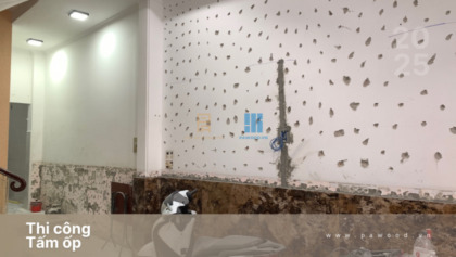 Thông tin công trình thi công hoàn thiện ốp tường than tre