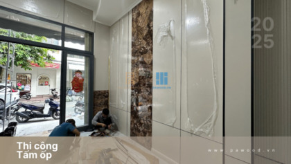 Thông tin công trình thi công hoàn thiện ốp tường than tre