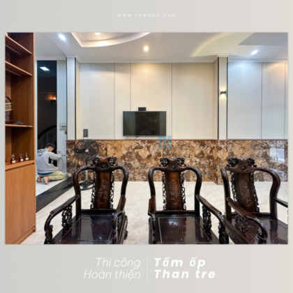 Phú An thi công hoàn thiện ốp tường than tre