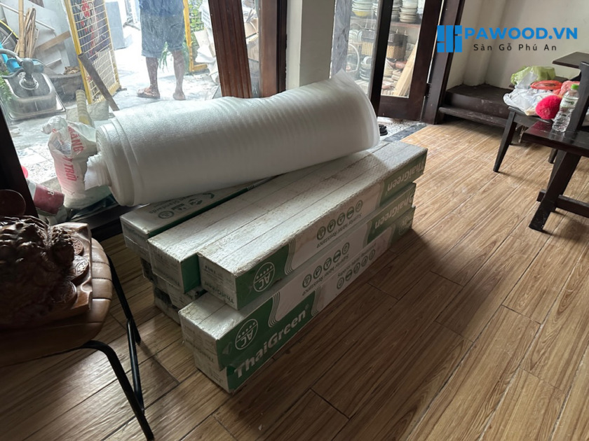 Phú An thi công hoàn thiện sàn gỗ màu óc chó ThaiGreen: