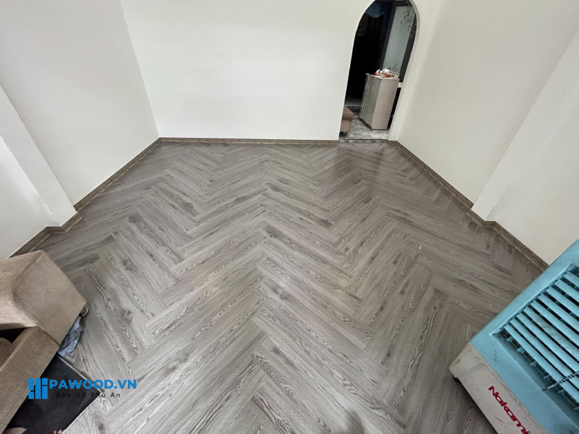 👉🏻 Với căn phòng vỏn vẹn 24m2 gia chủ cải tạo lại mặt sàn để kinh doanh, cho thuê dịch vụ, lựa chọn sàn nhựa sẵn keo Vinyl Floor là một điều vô cùng hợp lí và tiết kiệm. Với kiểu lót xương cá vô cùng hot ở năm 2024, sàn xương cá giá rẻ Vinyl Floor luôn bắt kịp được xu hướng qua bàn tay của đội thi công nhà Phú An. Với bề mặt được làm bởi công nghệ tạo vân gỗ 3D, sàn nhựa Vinyl Floor sẽ mang lại trải nghiệm đáng giá cho quý khách hàng khi sử dụng.
