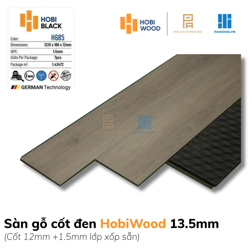 Sàn gỗ cốt đen HobiWood 13.5mm màu H685