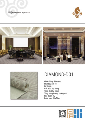 Dòng thảm cuộn Diamond của Goma là một trong những dòng thảm cuộn (Carpet Roll) bán chạy nhất, thường được lựa chọn cho các không gian cần sự sang trọng nhưng vẫn đảm bảo tối ưu chi phí.