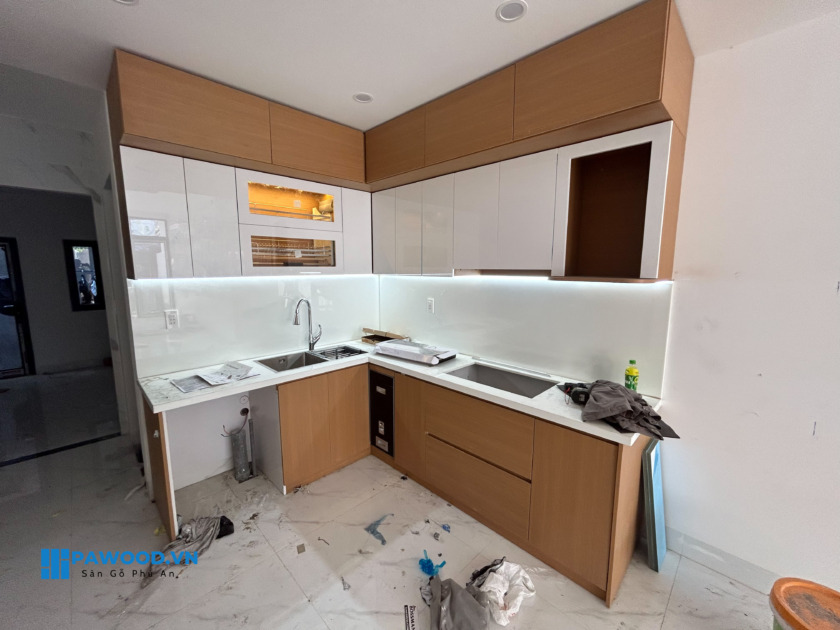 👉🏻 sản xuất thi công nội thất gỗ công nghiệp hàng đầu Đà Nẵng. Với thiết kế nhà hiện đại, căn bếp là điểm nhấn sáng nhất cho ngôi nhà, Phú An thiết kế hệ thống bếp màu trắng phối với màu gỗ để hợp hơn với tổng thể. Các vật liệu như Laminate cao cấp được Phú An sử dụng mang đến độ bền cực cao cho khách hàng.
