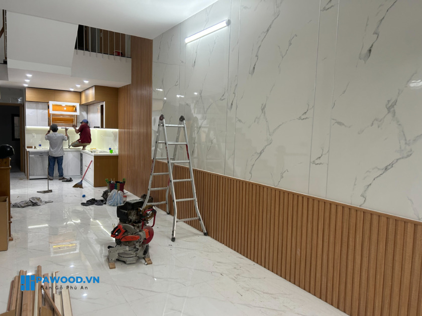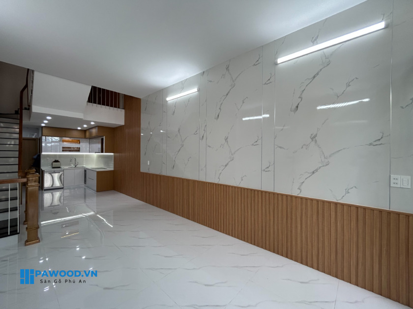3. Ứng dụng sản phẩm: tấm ốp lam sóng Minh Phương, PVC AIM, nội thất gỗ cánh Laminate