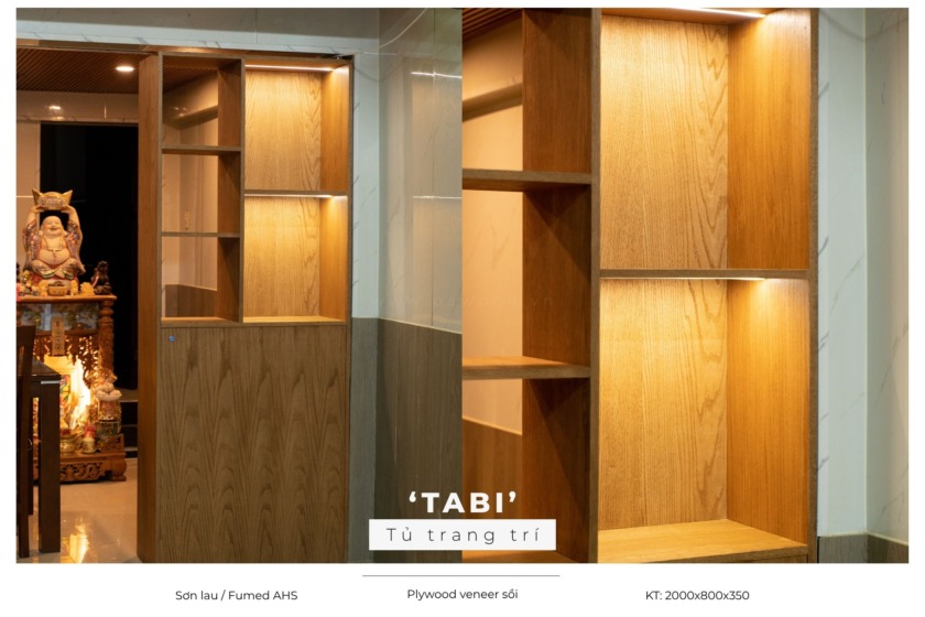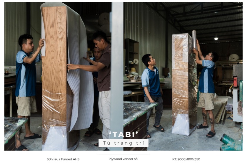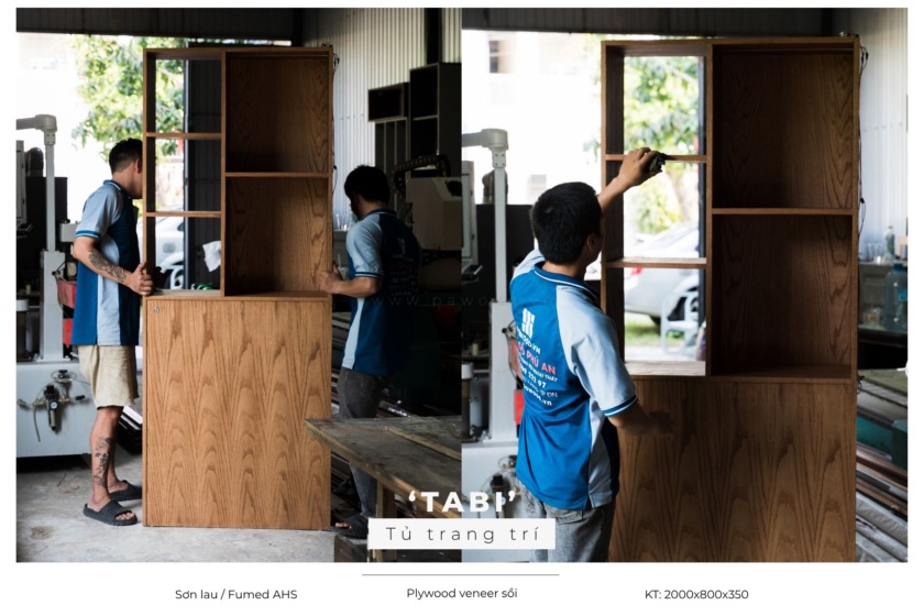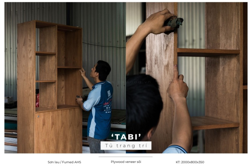 Sự khác biệt của xưởng chúng tôi nằm ở quy trình xử lý vật liệu. Mỗi chiếc tủ làm từ Plywood phủ veneer đều trải qua quá trình chế tác khắt khe. Lớp veneer được ép nhiệt phẳng lì, kết hợp cùng kỹ thuật dán cạnh không đường nẹp liền khối (seamless edge). Sự tỉ mỉ trong quá trình chà nhám và phủ sơn mờ giúp từng module tủ đạt độ hoàn mỹ tối đa, mượt mà và chuẩn xác đến mức mang lại hiệu ứng thị giác sắc nét. Không có chỗ cho sự cẩu thả, mỗi góc cạnh đều là sự giao thoa của độ chính xác cơ khí và bàn tay tài hoa của người thợ.