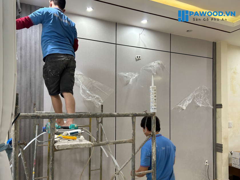 Để ngăn ngừa ẩm mốc tác động đến tấm ốp, Phú An thi công lên tường khu xương chịu lực có nhiệm vụ làm trung gian kết nối tấm ốp và tường, tạo khoảng cách hở để ẩm mốc không thể làm ảnh hưởng đến tấm ốp Than tre. Khung xương được đóng vào tường bằng đinh, sau đó tấm ốp Than tre được cố định vào khung xương bằng keo nội thất chuyên dụng siêu cứng. Do đó tạo nên khoảng cách để che đi tường ẩm, ngăn ngừa mùi ẩm mốc phát tán ra ngoài.