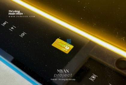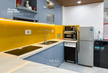 Bếp Acrylic siêu bóng là một điếm nhấn chính của không gian sinh hoạt bởi độ bóng cực cao của cánh Acrylic kết hợp cùng hệ thống đèn LED gây ấn tượng mạnh từ ánh nhìn đầu tiên.