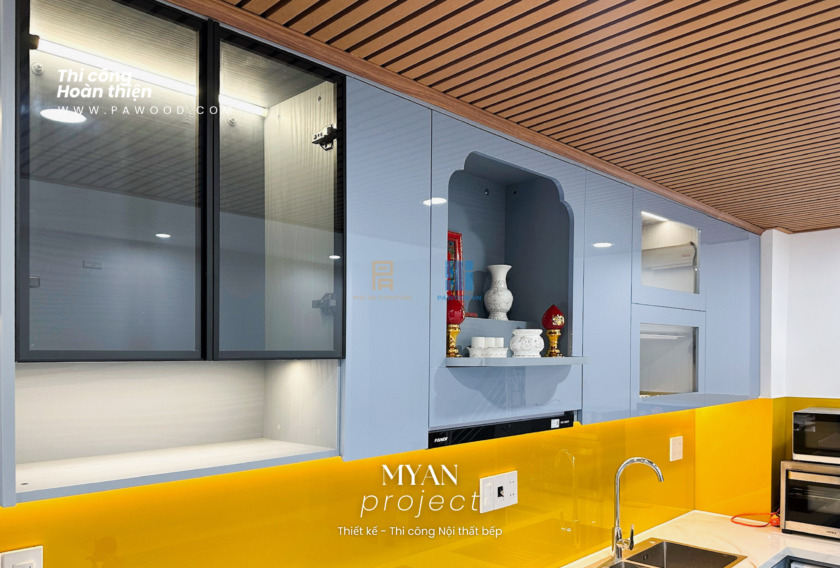 Hình ảnh của công trình thi hoàn thiện bếp Acrylic: