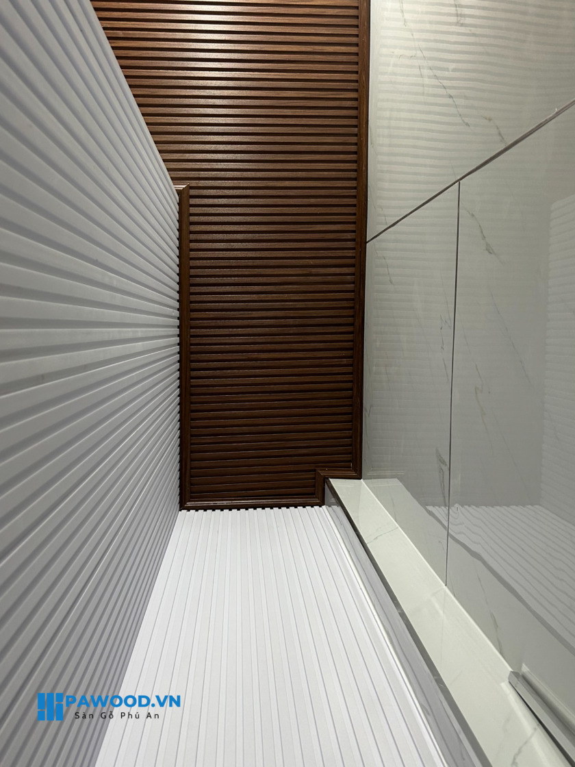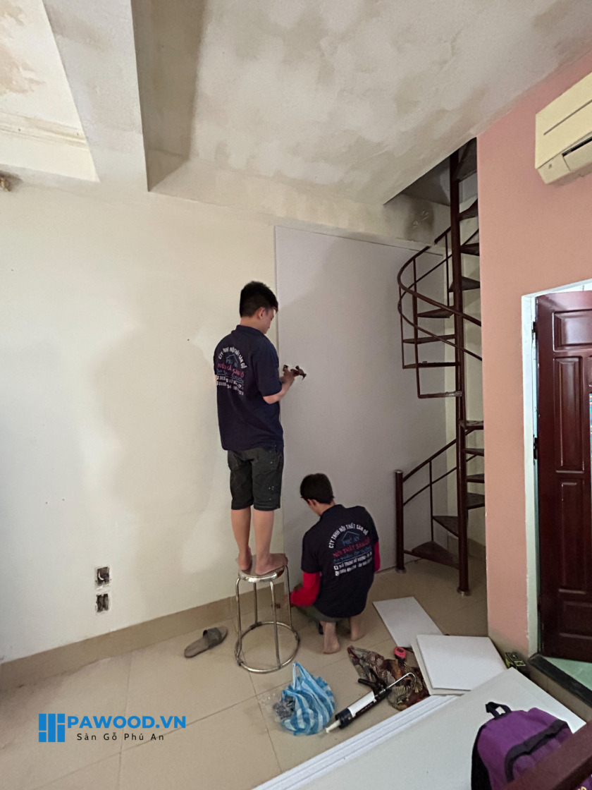 4. Vật liệu: tấm ốp nhựa, sàn gỗ công nghiệp 12mm