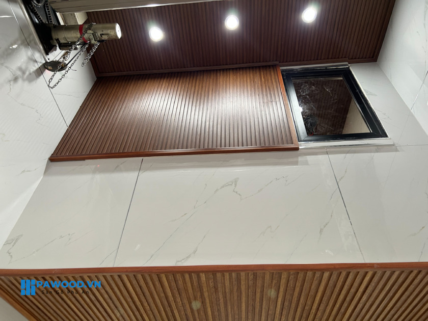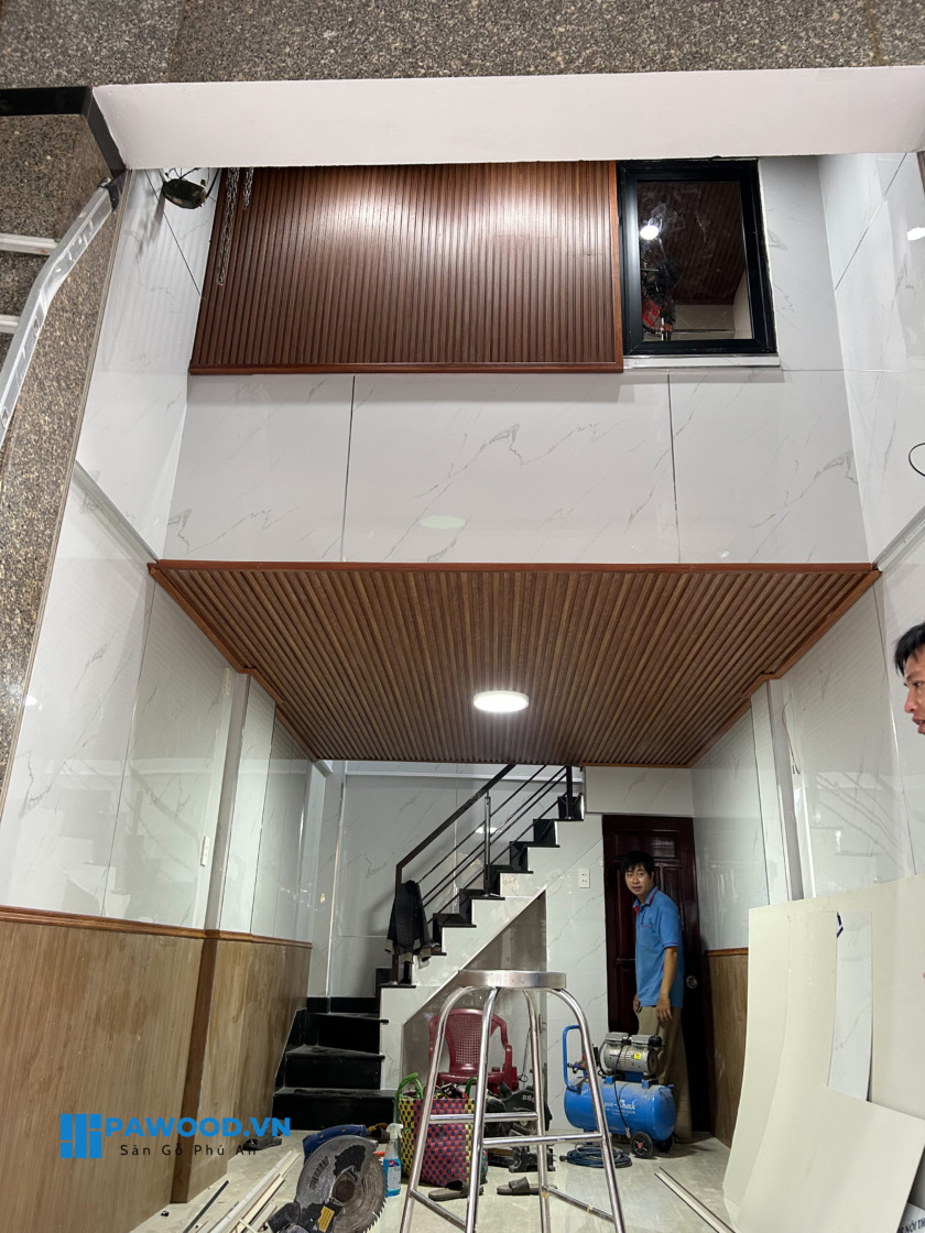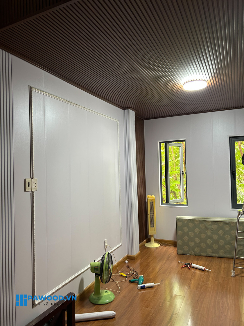 4. Vật liệu: tấm ốp nhựa, sàn gỗ công nghiệp 12mm