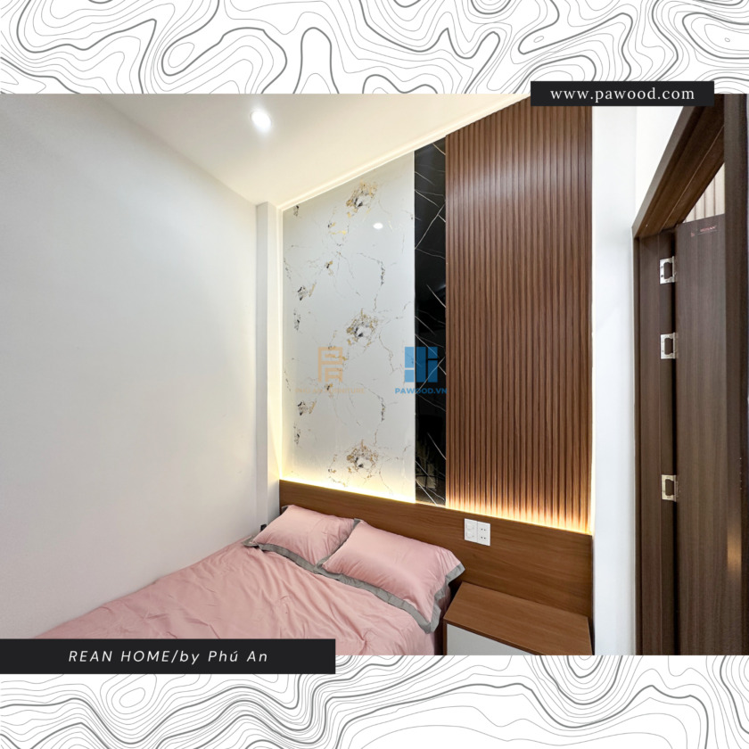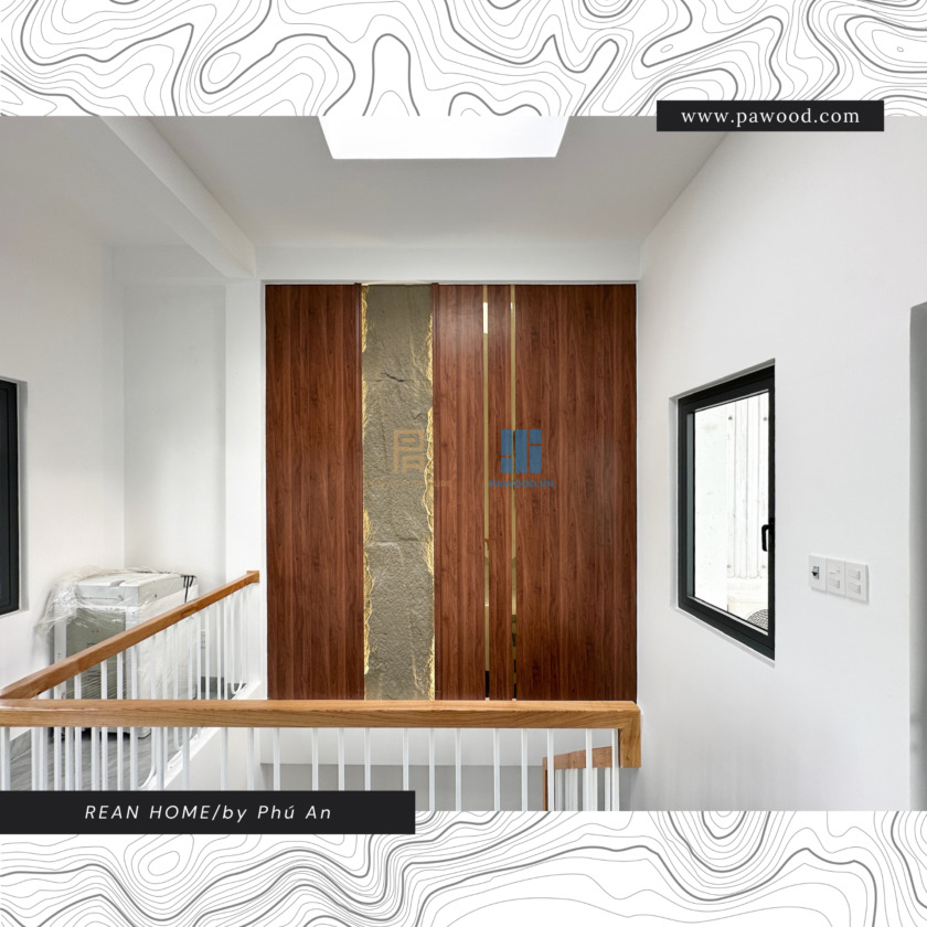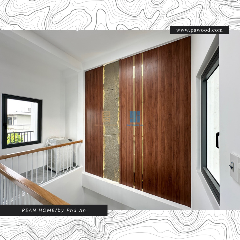 Được sử dụng hầu hết gỗ công nghiệp kết hợp cùng các loại tấm ốp nhựa cao cấp cho ra các không gian khác biêt cũng như tăng độ thẩm mĩ của ngôi nhà. Với phối màu trung tính, tạo điểm nhấn bằng các hoạ tiết gỗ, các chi tiết đèn led để tránh gây nhàm chán cho không gian.