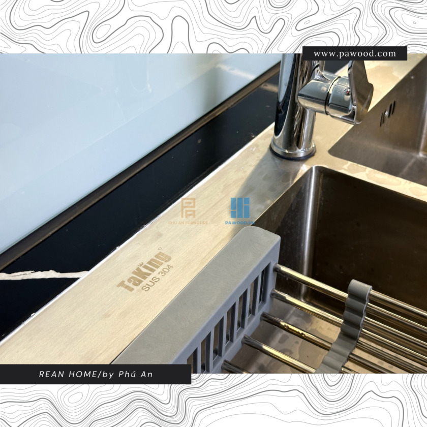Phần bếp được Phú An chăm chuốt chi tiết với độ hoàn thiện cực cao, nâng tầm không gian sống cho dự án thi công nội thất trọn gói. Phụ kiện bếp được Phú An lựa chọn dòng phụ kiện Taking cao cấp. Với hãng Taking trứ danh trong ngành bếp, anh chị có thể sử dụng thời gian dài mà sản phẩm của chúng ta không hề hỏng hóc.