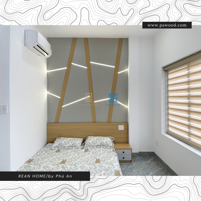 Được sử dụng hầu hết gỗ công nghiệp kết hợp cùng các loại tấm ốp nhựa cao cấp cho ra các không gian khác biêt cũng như tăng độ thẩm mĩ của ngôi nhà. Với phối màu trung tính, tạo điểm nhấn bằng các hoạ tiết gỗ, các chi tiết đèn led để tránh gây nhàm chán cho không gian.