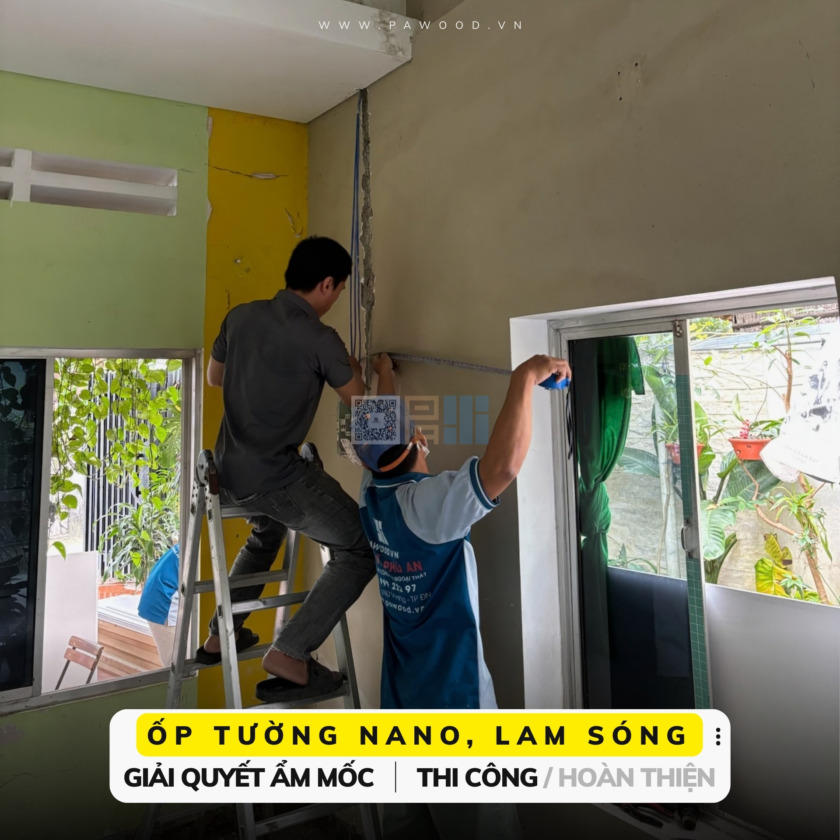 Tìm hiểu hiệu quả tuyệt vời của giải pháp ốp tường chống ẩm. Chi tiết quá trình thi công hoàn thiện bằng vật liệu tấm Nano, Lam sóng và nhựa PVC tại khu vực Quảng Nam.