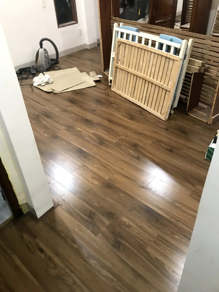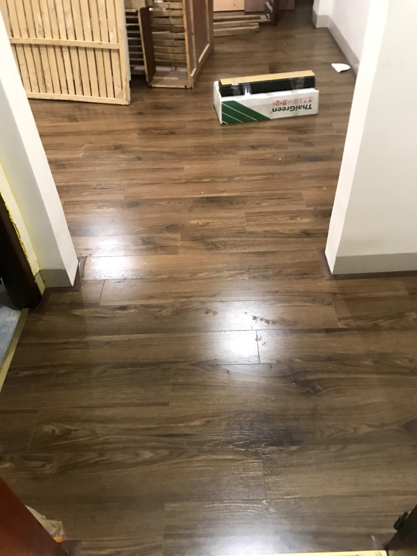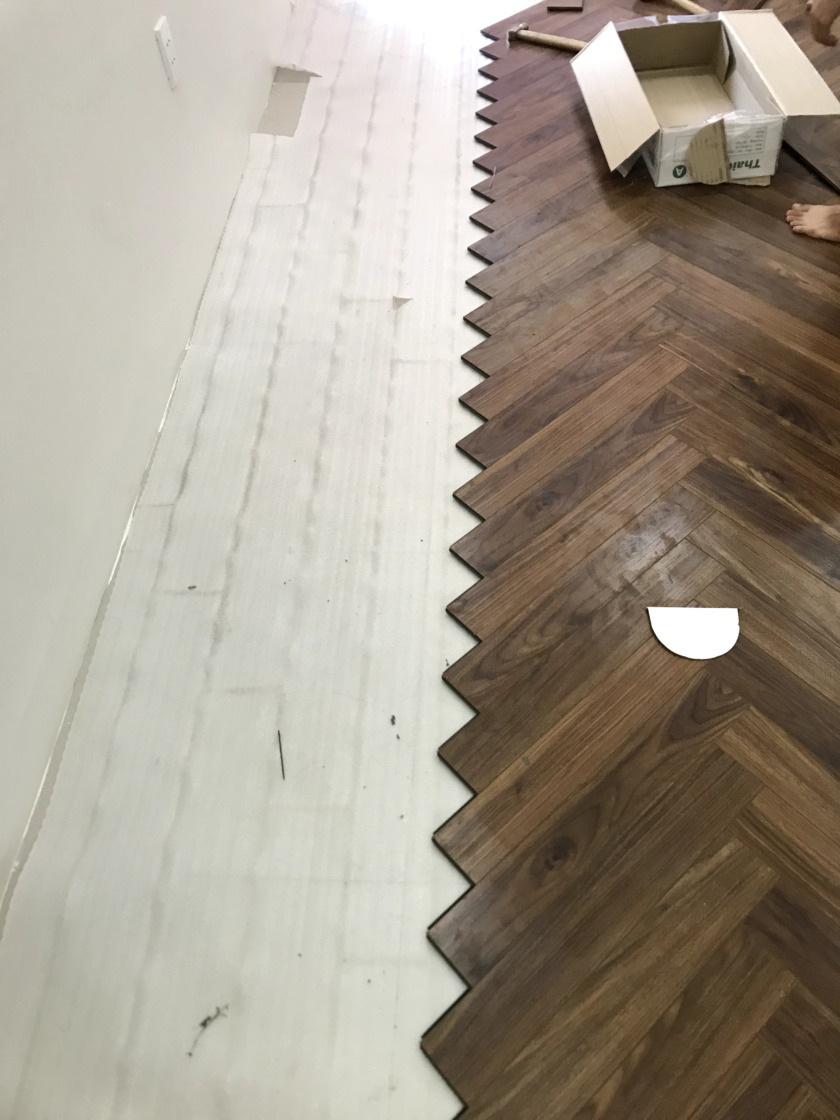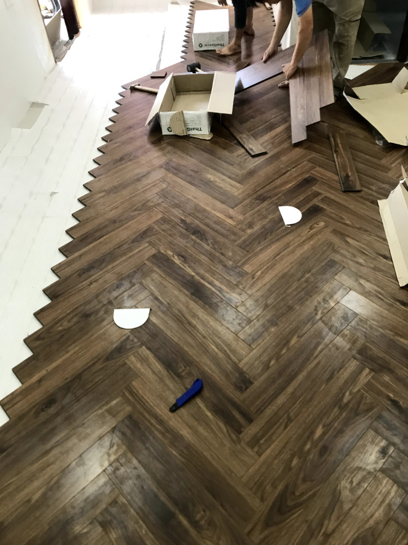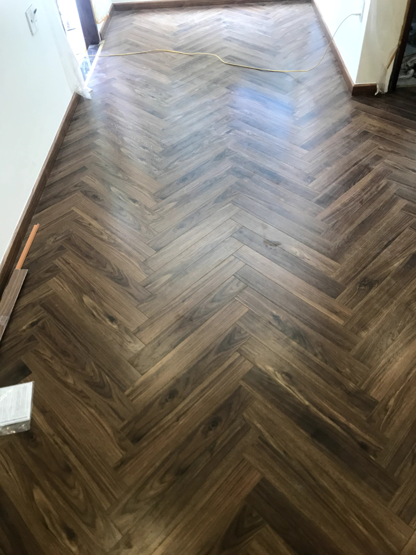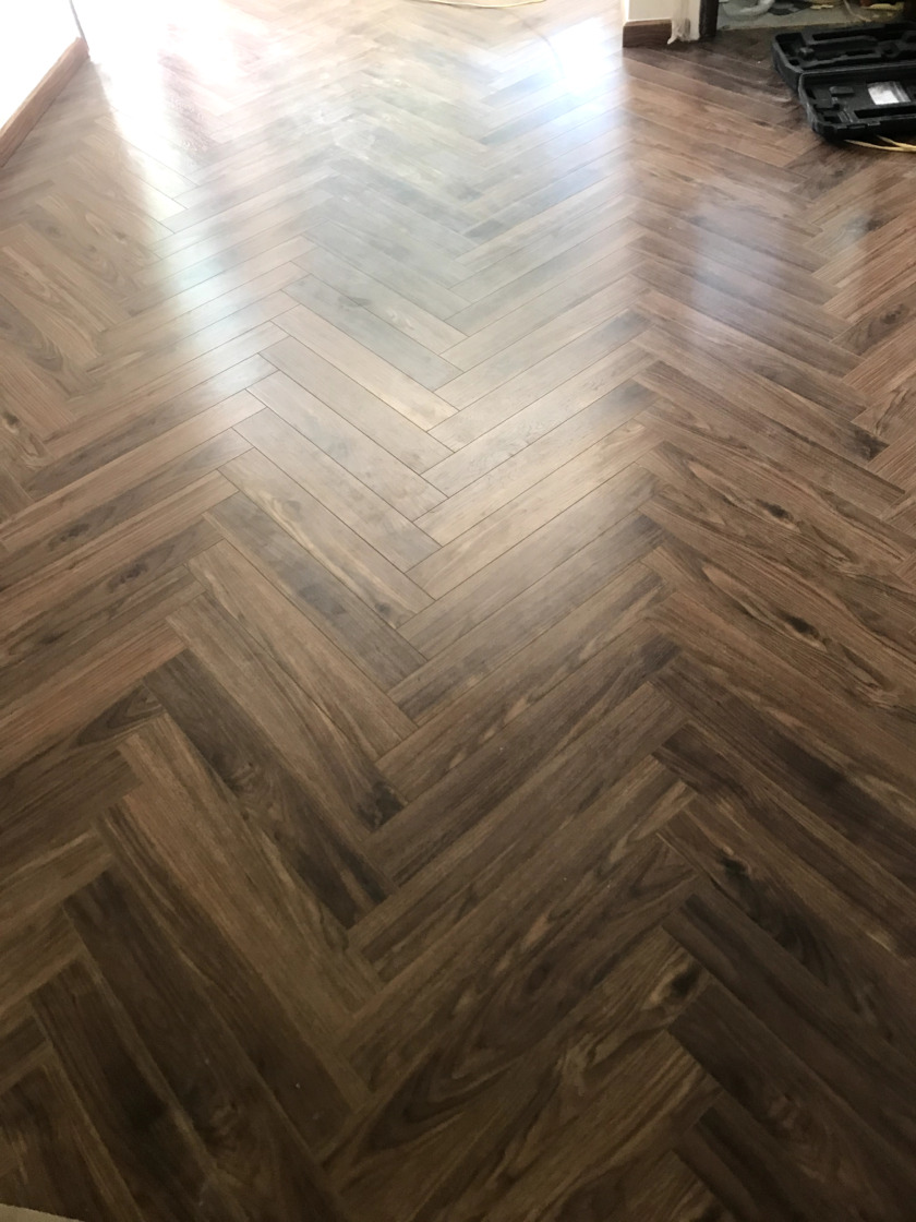 Một số hình ảnh của công trình sàn gỗ xương cá ThaiGreen 12mm: